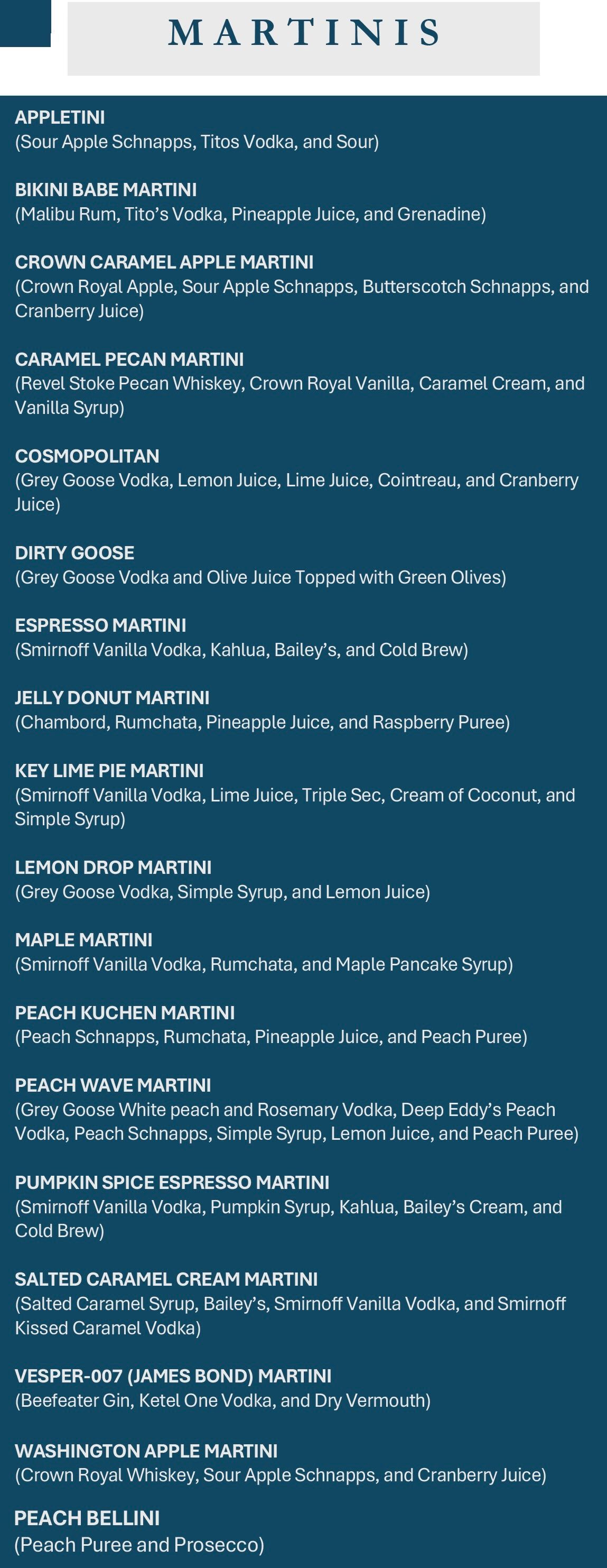Serving the Region's Finest Martinis, Wine, Beer, Cocktails & Tasty Bites