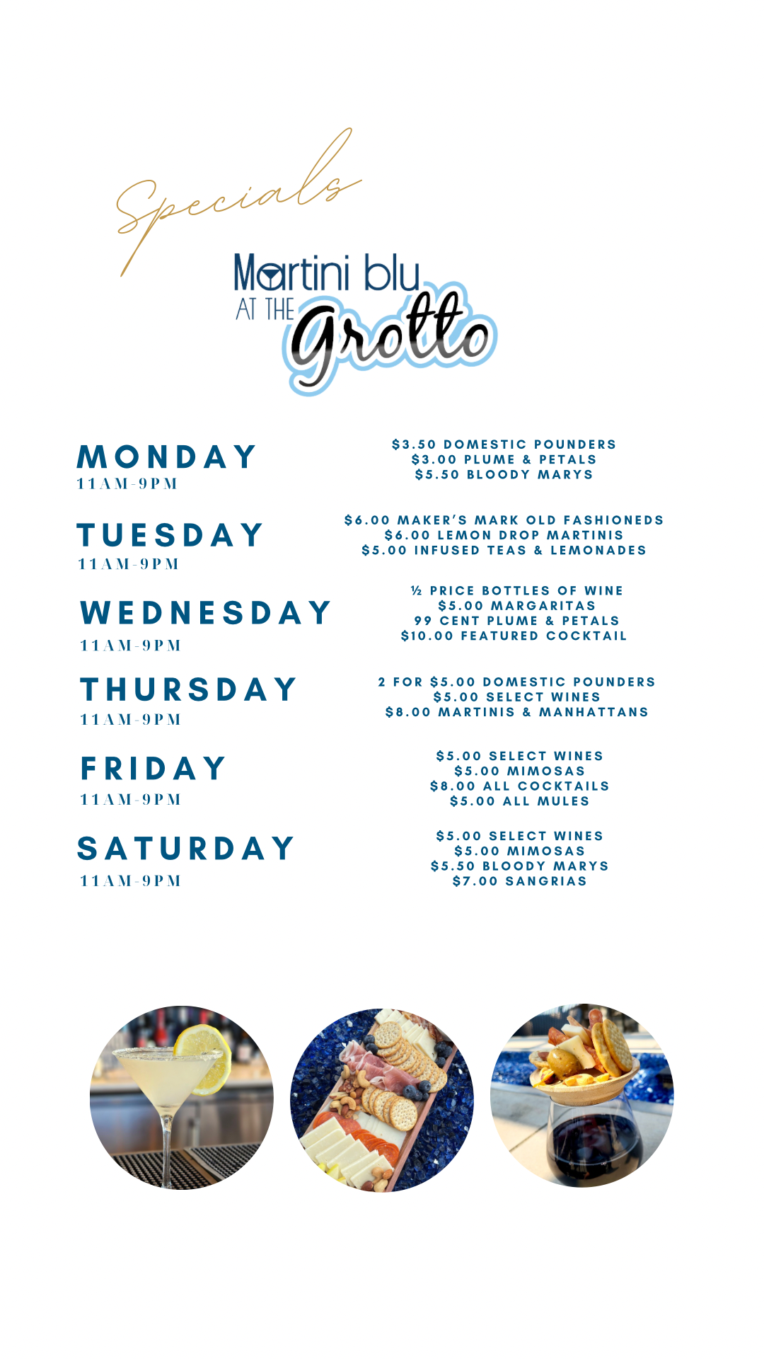 The region's premier Martini Bar featuring a relaxing, airy atmosphere. Hungry? Food is just the beginning of your experience at Martini BLU. In addition to eating dishes prepared by the best chefs in town, you’ll enjoy our unique sauces and dressings along with a front-row view of BLU Water Pond and the relaxing fountain.